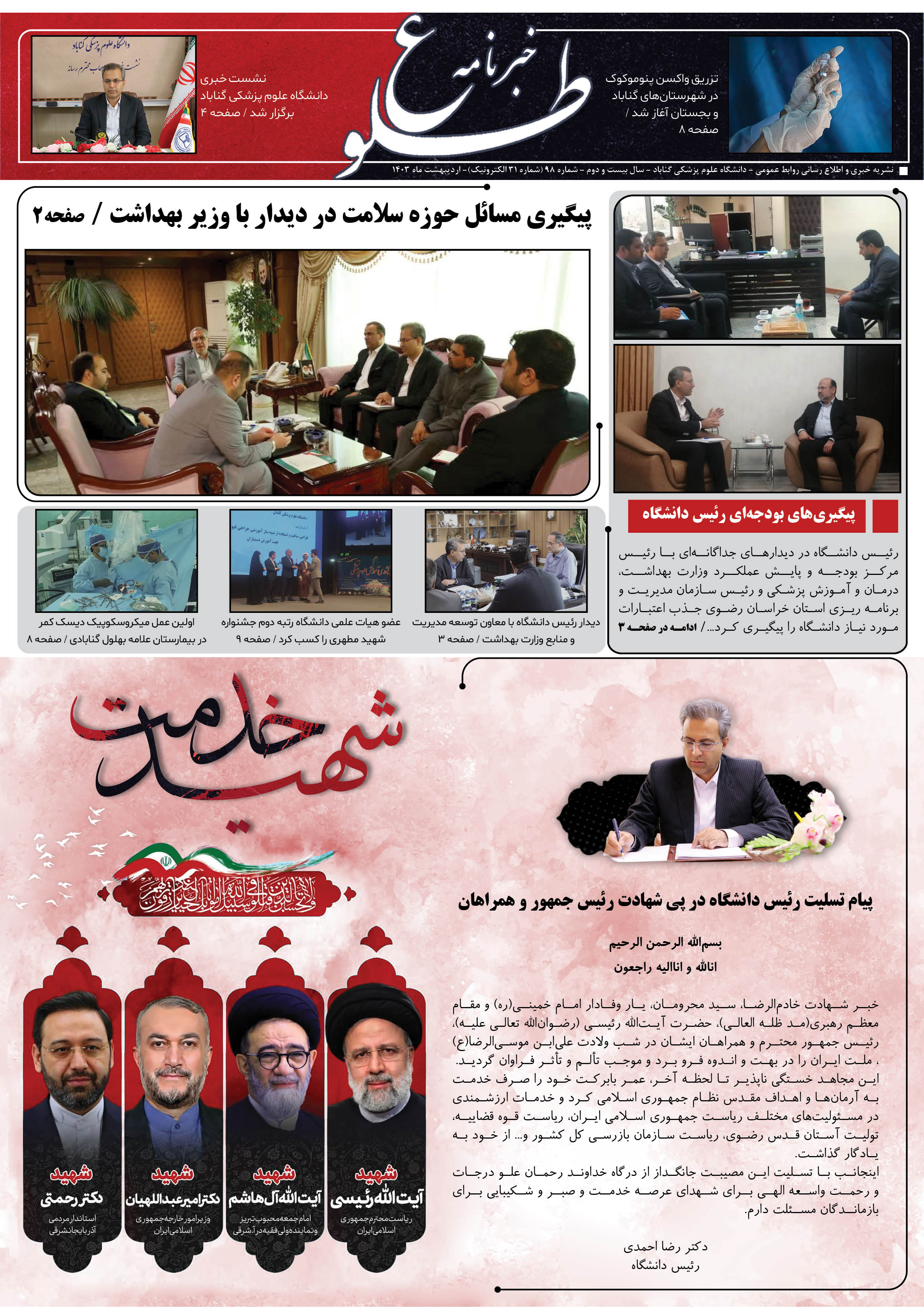 نشریه خبری و اطلاع رسانی روابط عمومی دانشگاه علوم پزشکی گناباد (اردیبهشت ماه 1403)