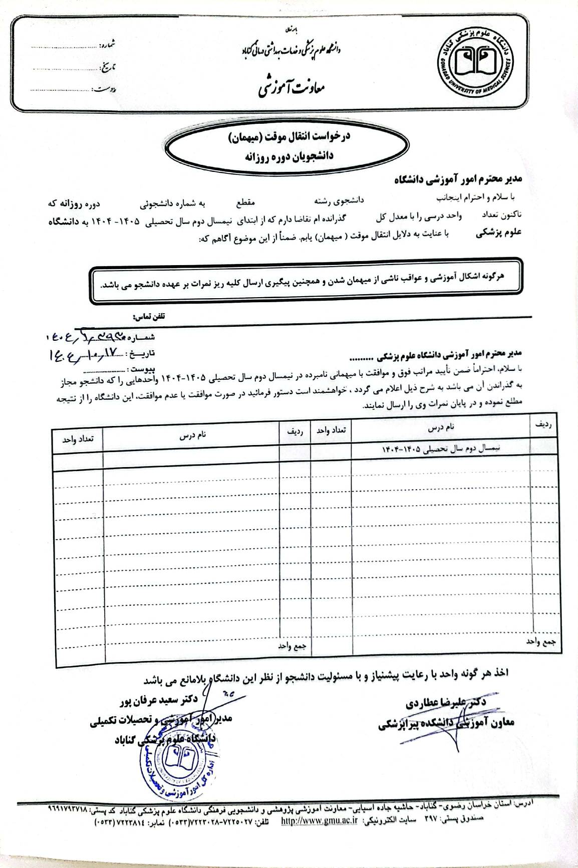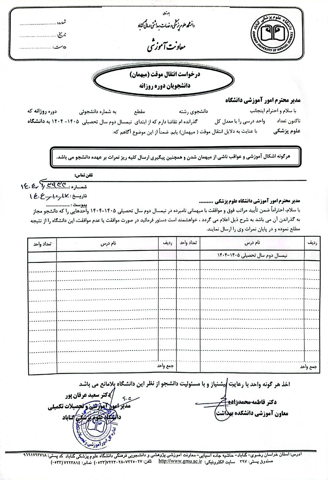 فرم موافقت با میهمانی دانشجویان روزانه (دانشکده پیراپزشکی)