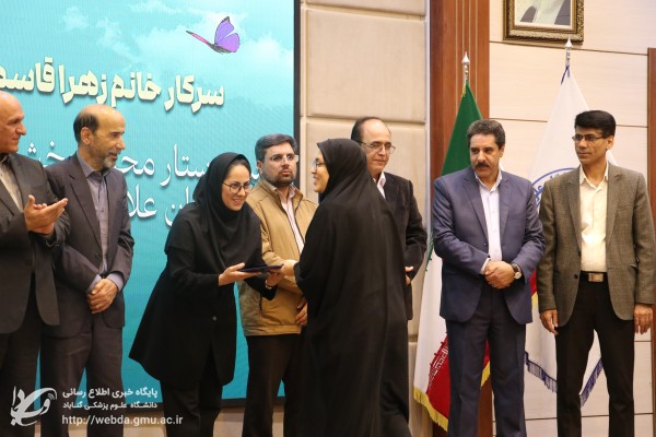 در ادامه این مراسم از فاطمه افشاری، عضو هیأت علمی دانشگاه به عنوان پرستار نمونه معاونت آموزشی و از فاطمه علیزاده پرستار مركز خدمات جامع سلامت كاخك به عنوان پرستار نمونه معاونت بهداشت دانشگاه تقدیر شد.