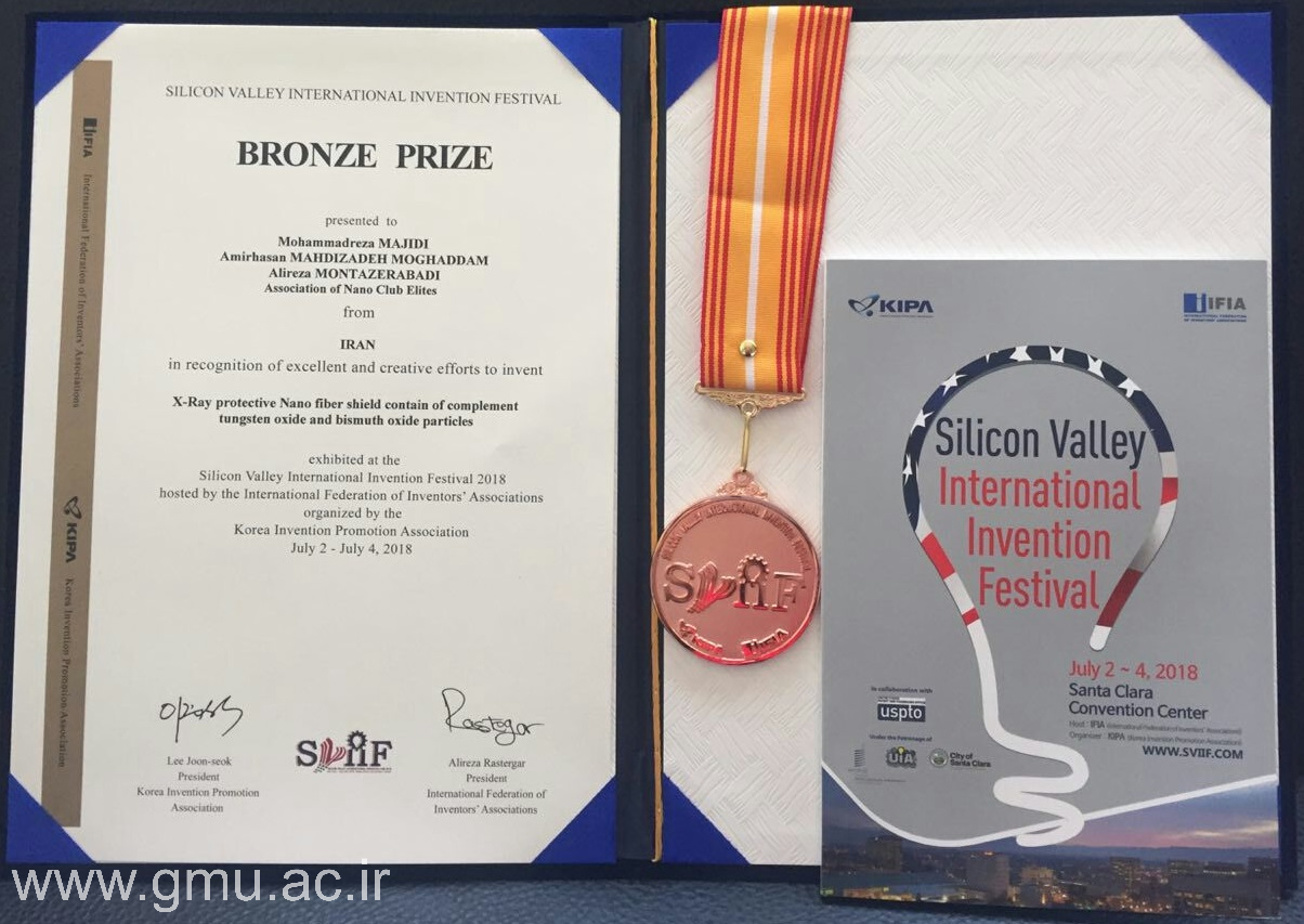 - 🥉 Bronze Medal at the Silicon Valley International Invention Festival 2018, Los Angeles, USA — recognized by the International Federation of Inventors’ Associations (IFIA) for outstanding innovation in nanofiber shielding technology.