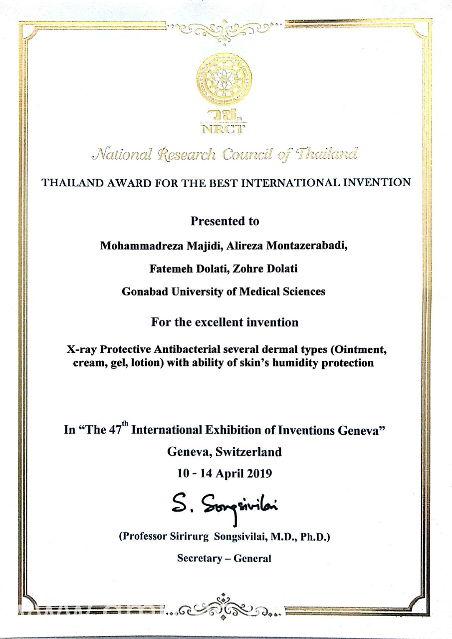 - 🏆 Thailand Award for the Best International Invention, granted by the National Research Council of Thailand (NRCT) during the same Geneva exhibition.