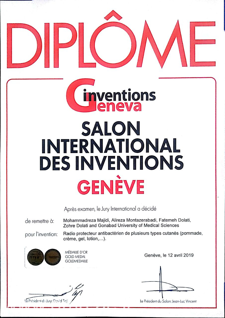 - 🥇 Gold Medal at the 47th International Exhibition of Inventions Geneva 2019, Switzerland — for the invention: “X‑Ray Protective Antibacterial Skin Products (Ointment, Cream, Gel, Lotion)”.